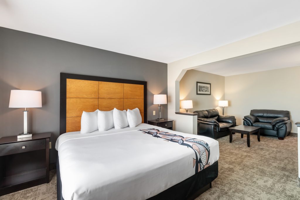 Feel like a King and stay in maximum comfort during your stay with us. Best Western Midway’s King Suites are a great place to rest and relax between social events, touristic outings or business activities such as trade shows. Staying in one of our King Suites gives you options, maybe you’ll want to kick back on the comfortable mattress and catch a movie or catch up in some episodes of your favorite TV show. Got to meet business colleagues or a client, our King Suite provides comfortable accommodation for a relaxed but professional meeting.